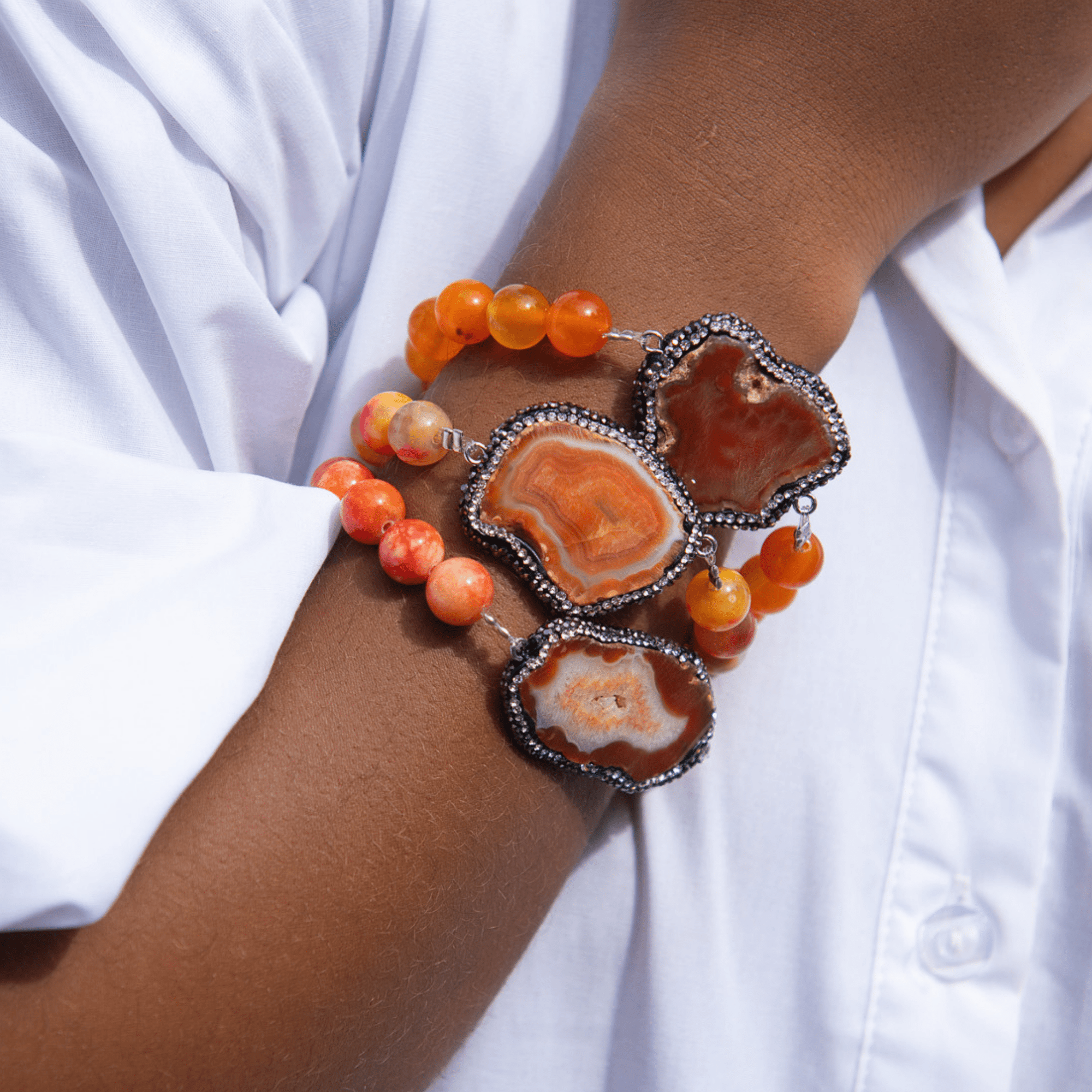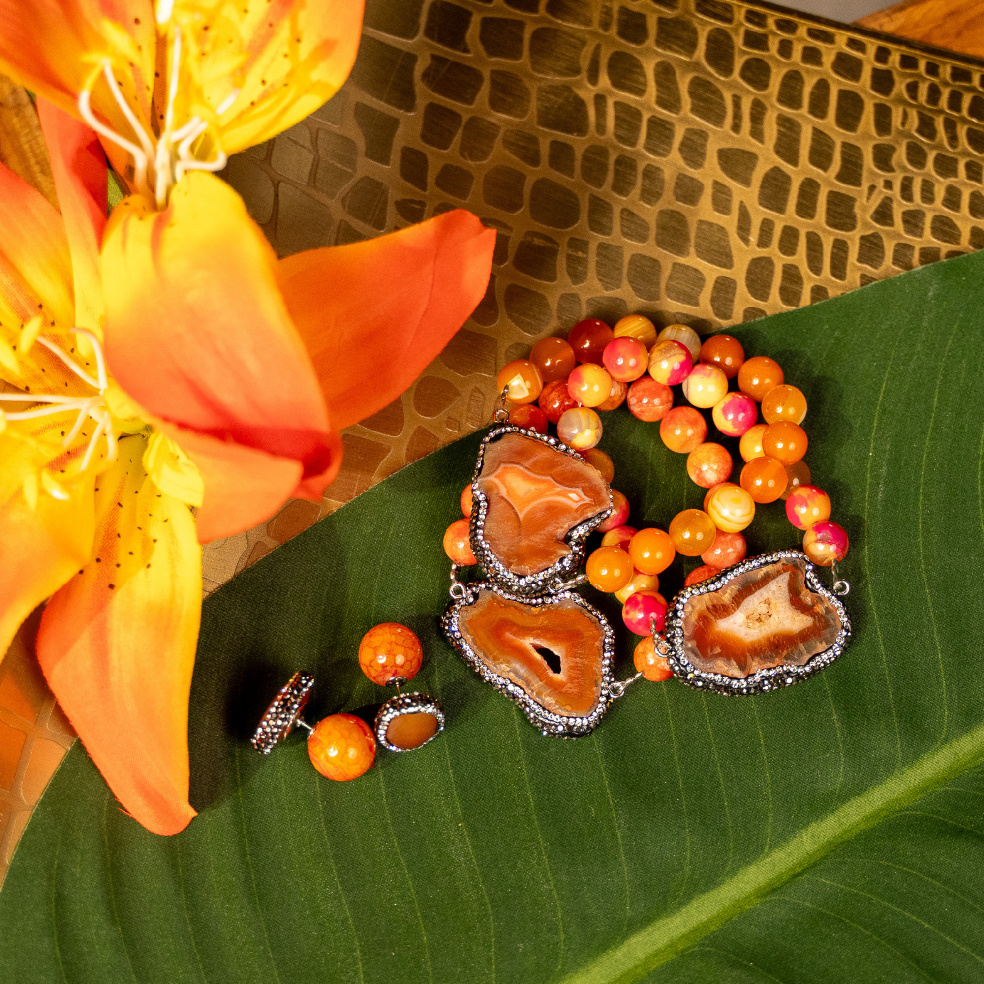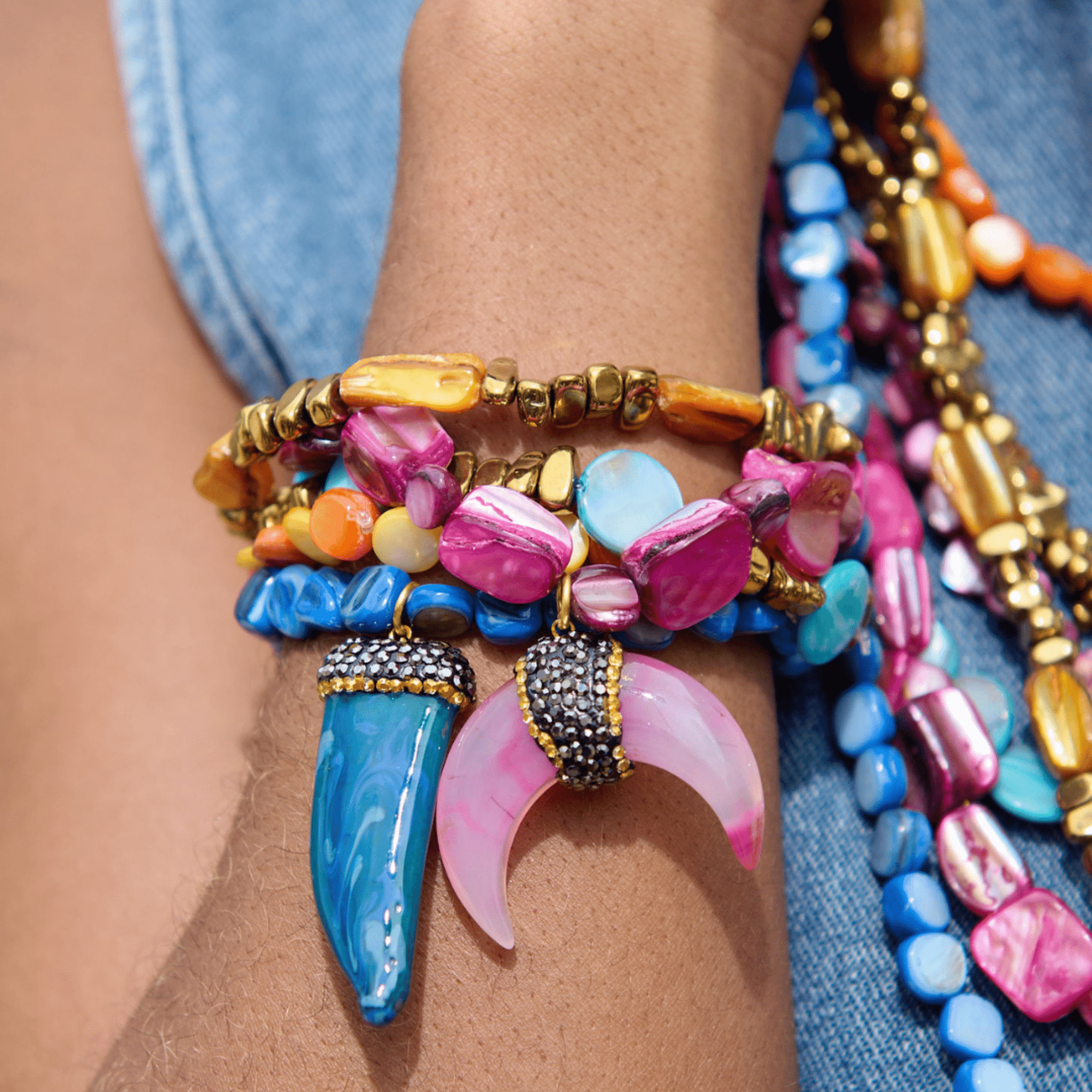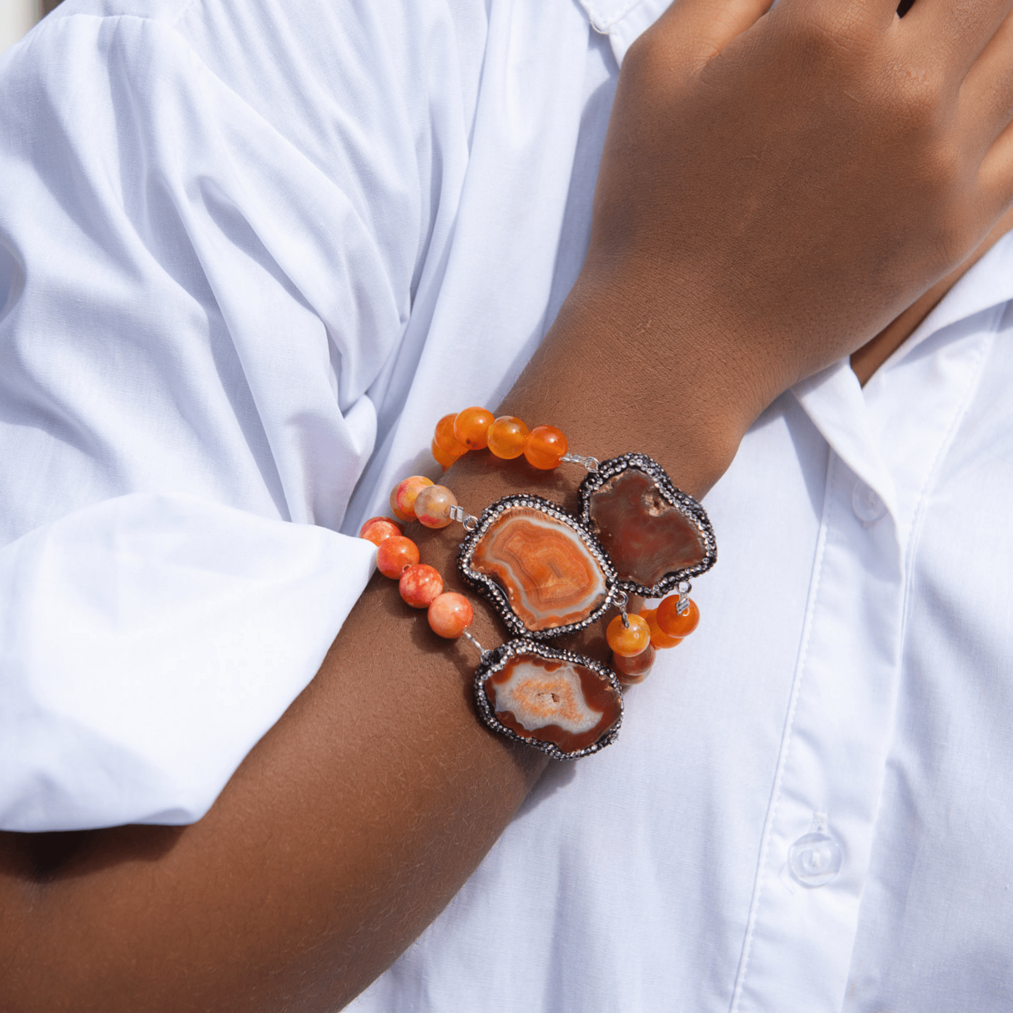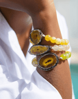 Welcome to the Colorful World of Chrysallis, a collection where natural beauty meets radiant transformation. Each piece is crafted with natural stones, polished agates, earthy minerals, and vibrant organic beads, creating rich layers of texture and color inspired by the magic of nature itself. Designed to honor the journey of evolving, this collection celebrates every hue, every pattern, and every imperfectly perfect stone that mirrors the woman wearing it, bold, grounded, growing, and gloriously one of a kind.