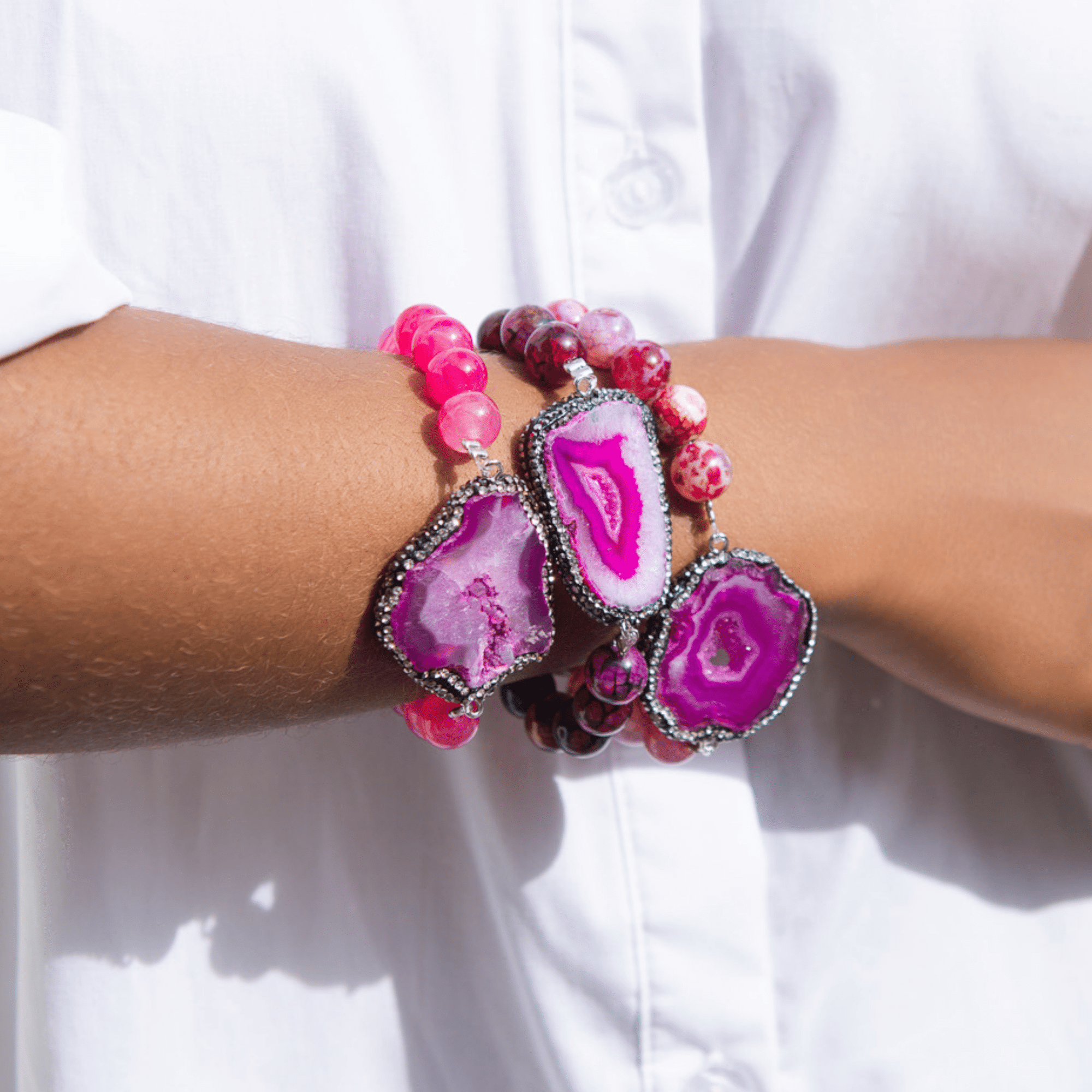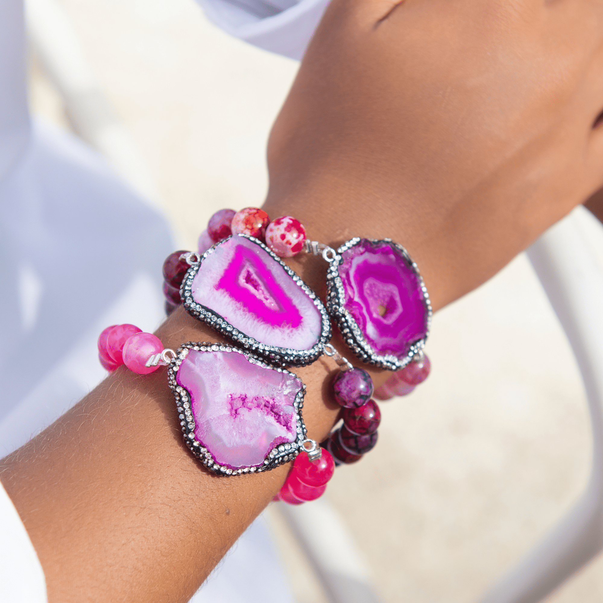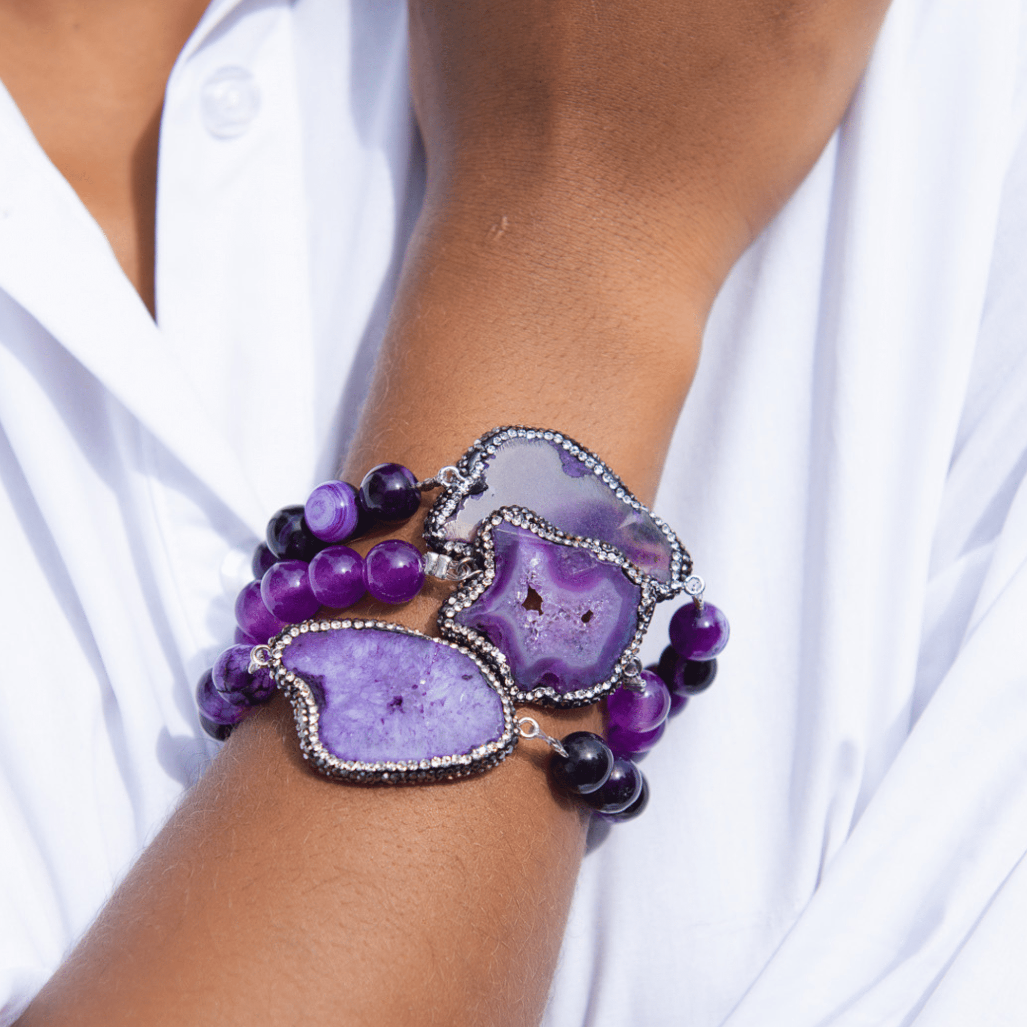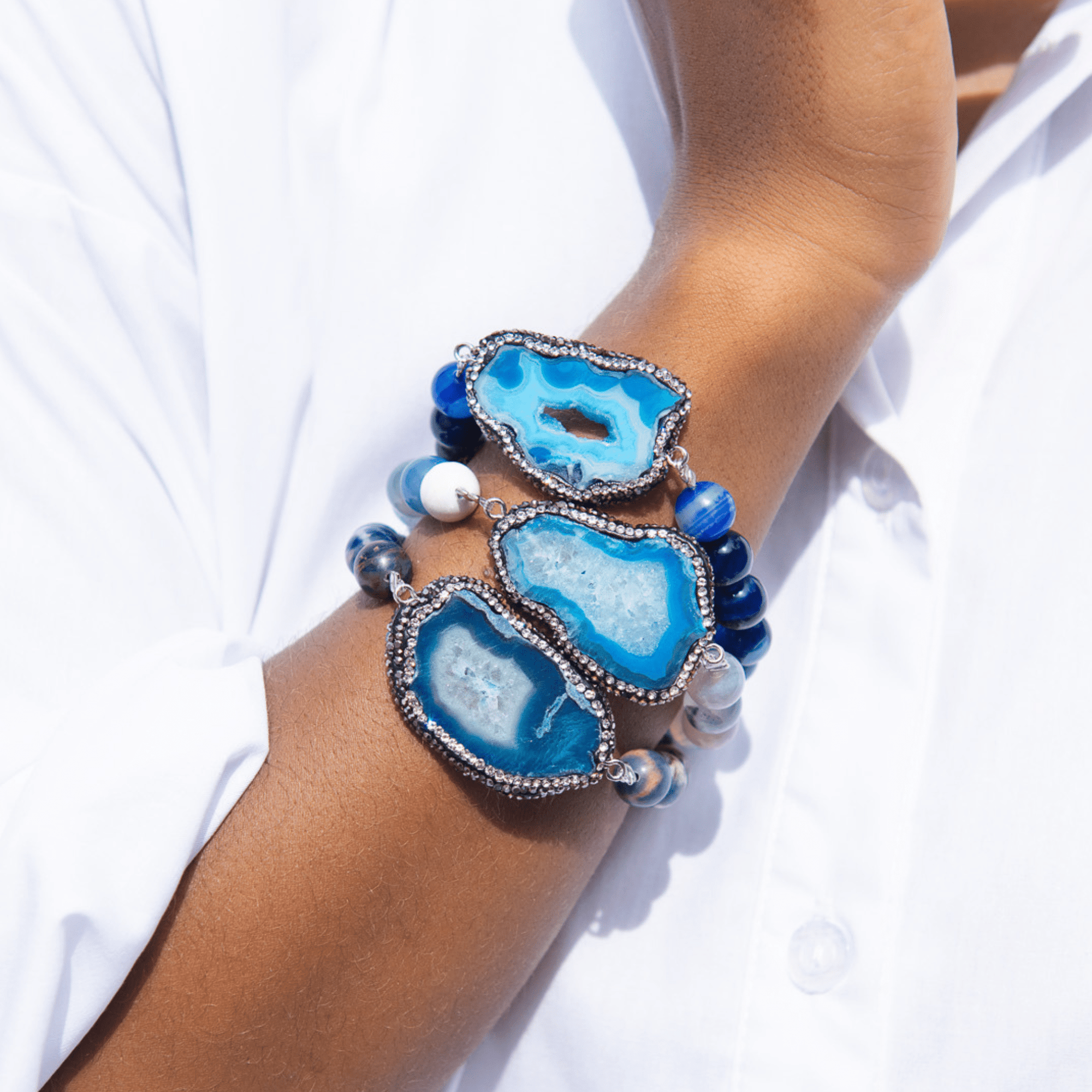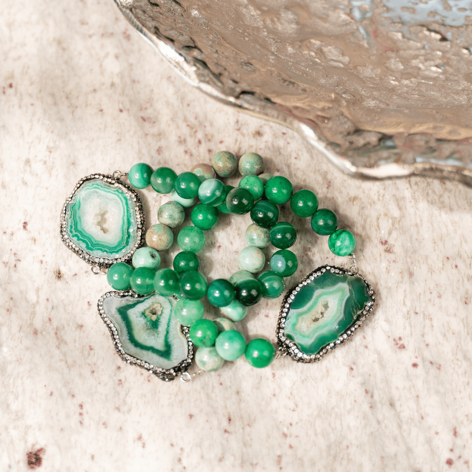 Welcome to the Colorful World of Chrysallis, a collection where natural beauty meets radiant transformation. Each piece is crafted with natural stones, polished agates, earthy minerals, and vibrant organic beads, creating rich layers of texture and color inspired by the magic of nature itself. Designed to honor the journey of evolving, this collection celebrates every hue, every pattern, and every imperfectly perfect stone that mirrors the woman wearing it, bold, grounded, growing, and gloriously one of a kind.