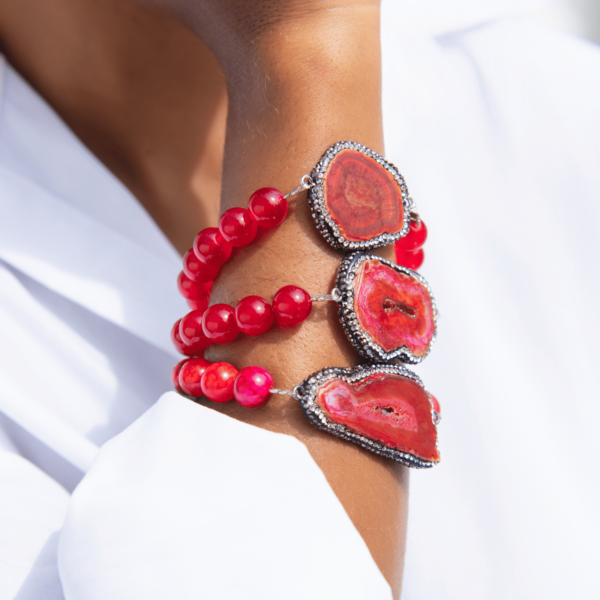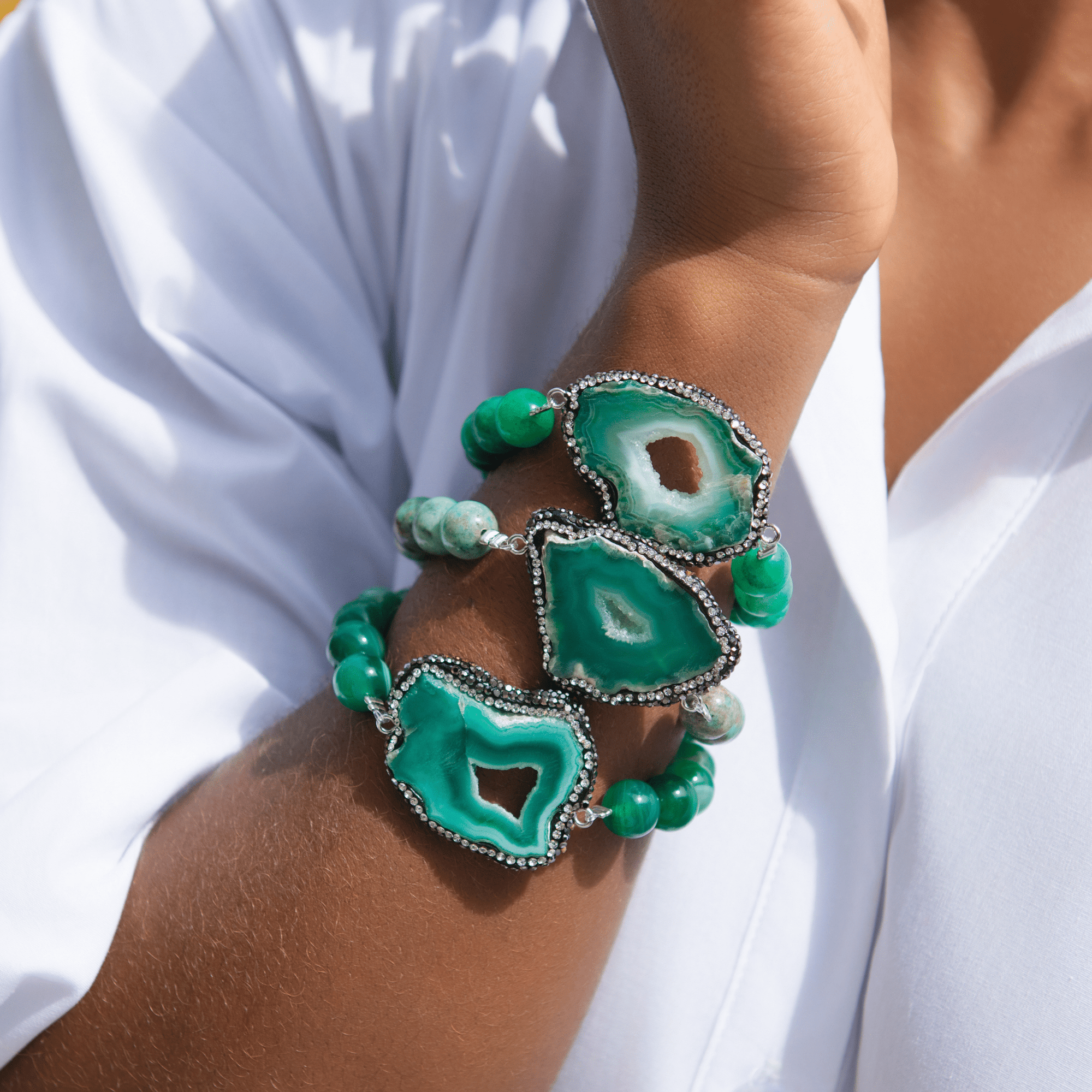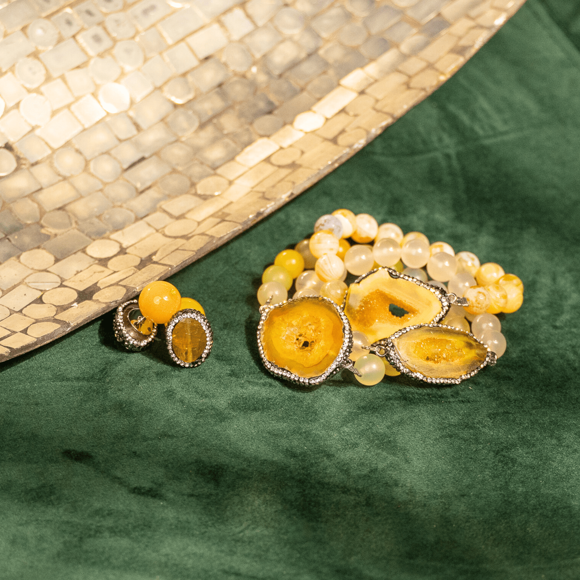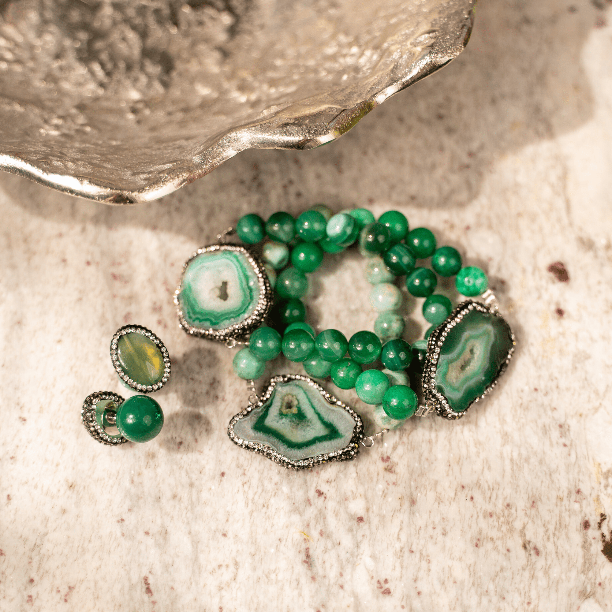 Welcome to the Colorful World of Chrysallis, a collection where natural beauty meets radiant transformation. Each piece is crafted with natural stones, polished agates, earthy minerals, and vibrant organic beads, creating rich layers of texture and color inspired by the magic of nature itself. Designed to honor the journey of evolving, this collection celebrates every hue, every pattern, and every imperfectly perfect stone that mirrors the woman wearing it, bold, grounded, growing, and gloriously one of a kind.