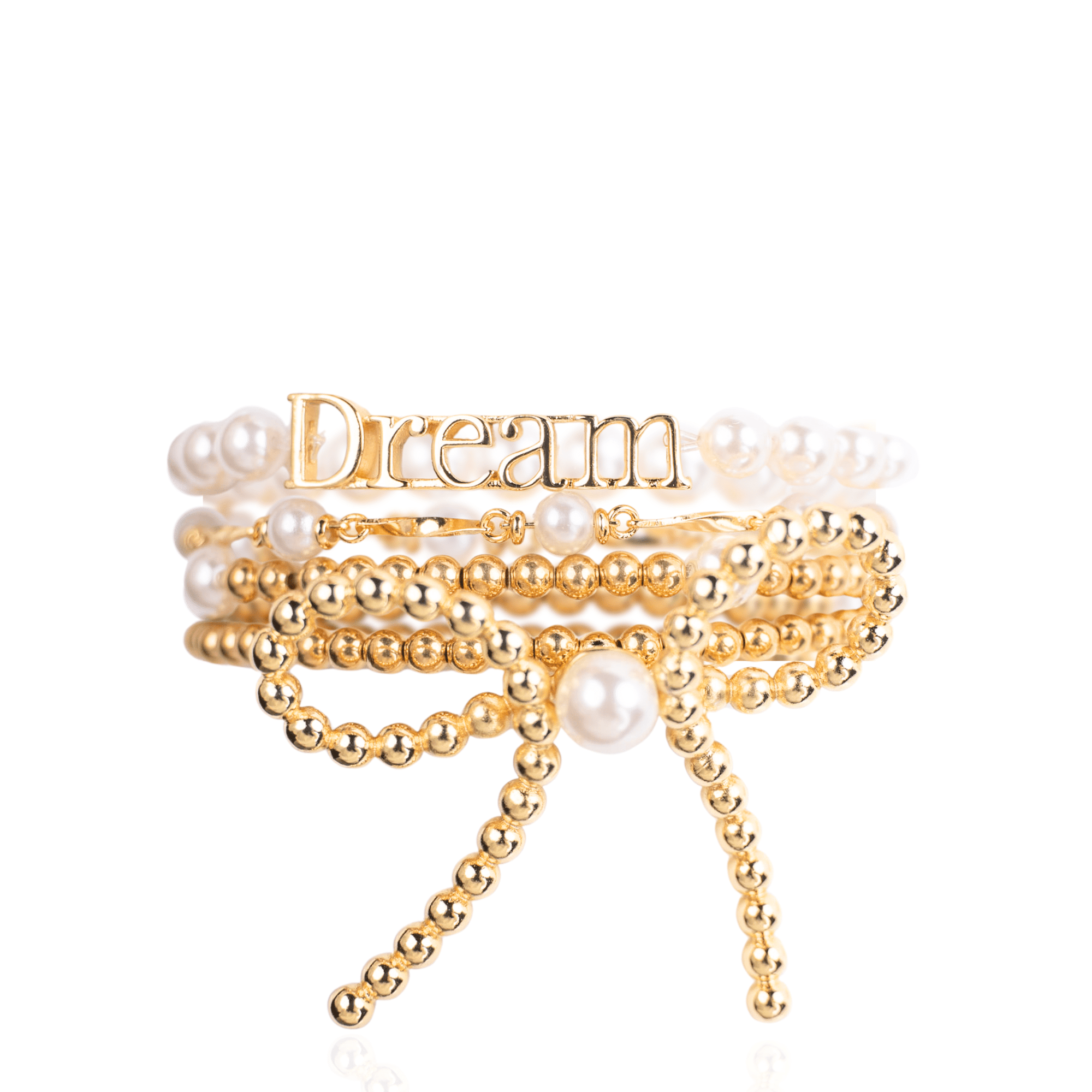 Gizelle 4pc Bracelet Stretch Stack - Ivory/Gold