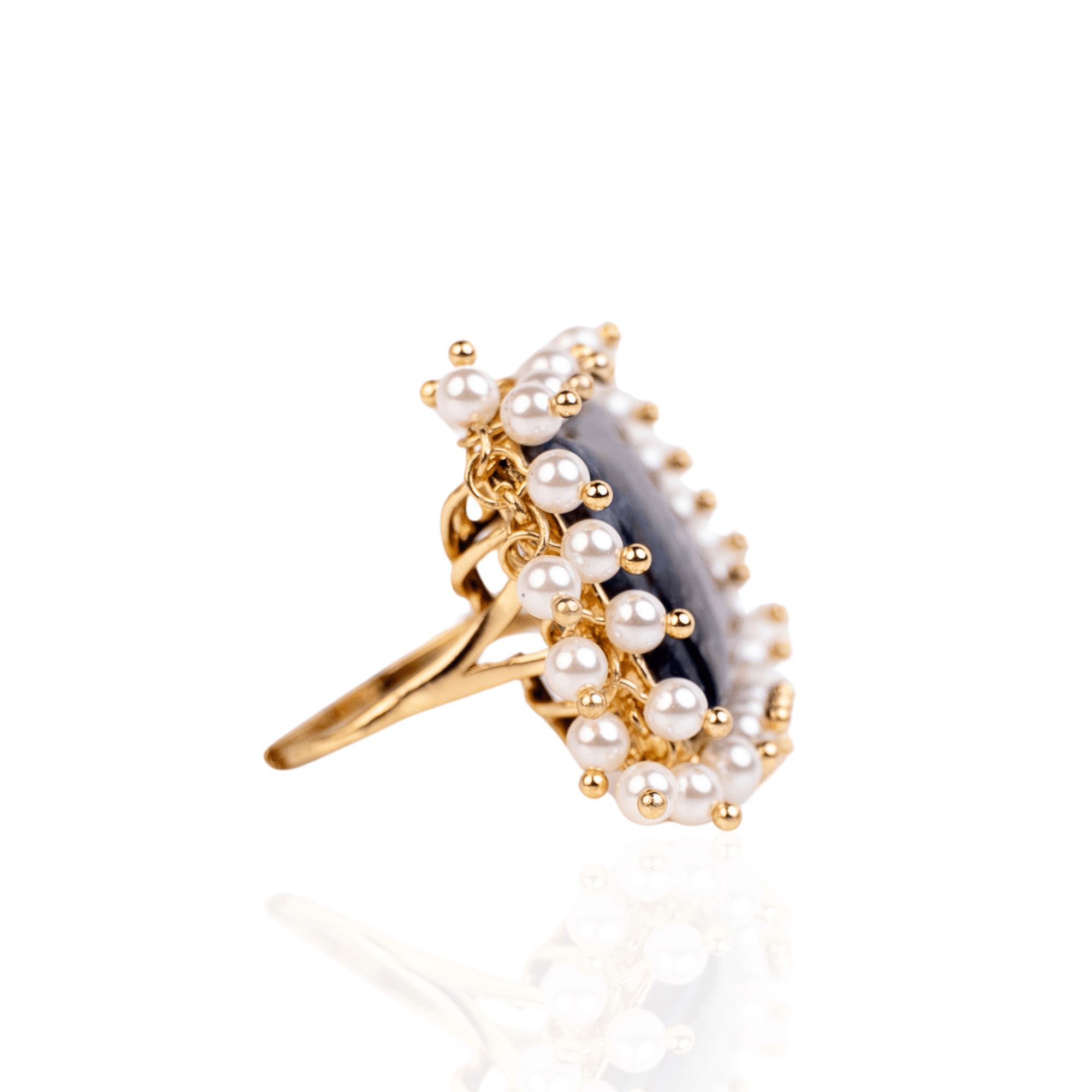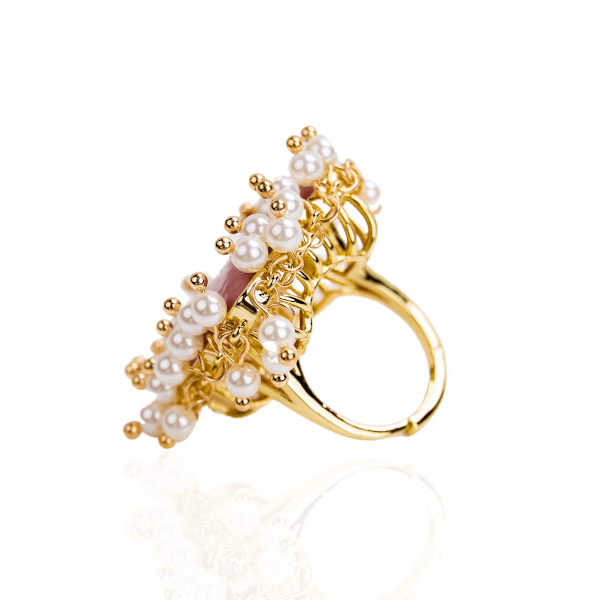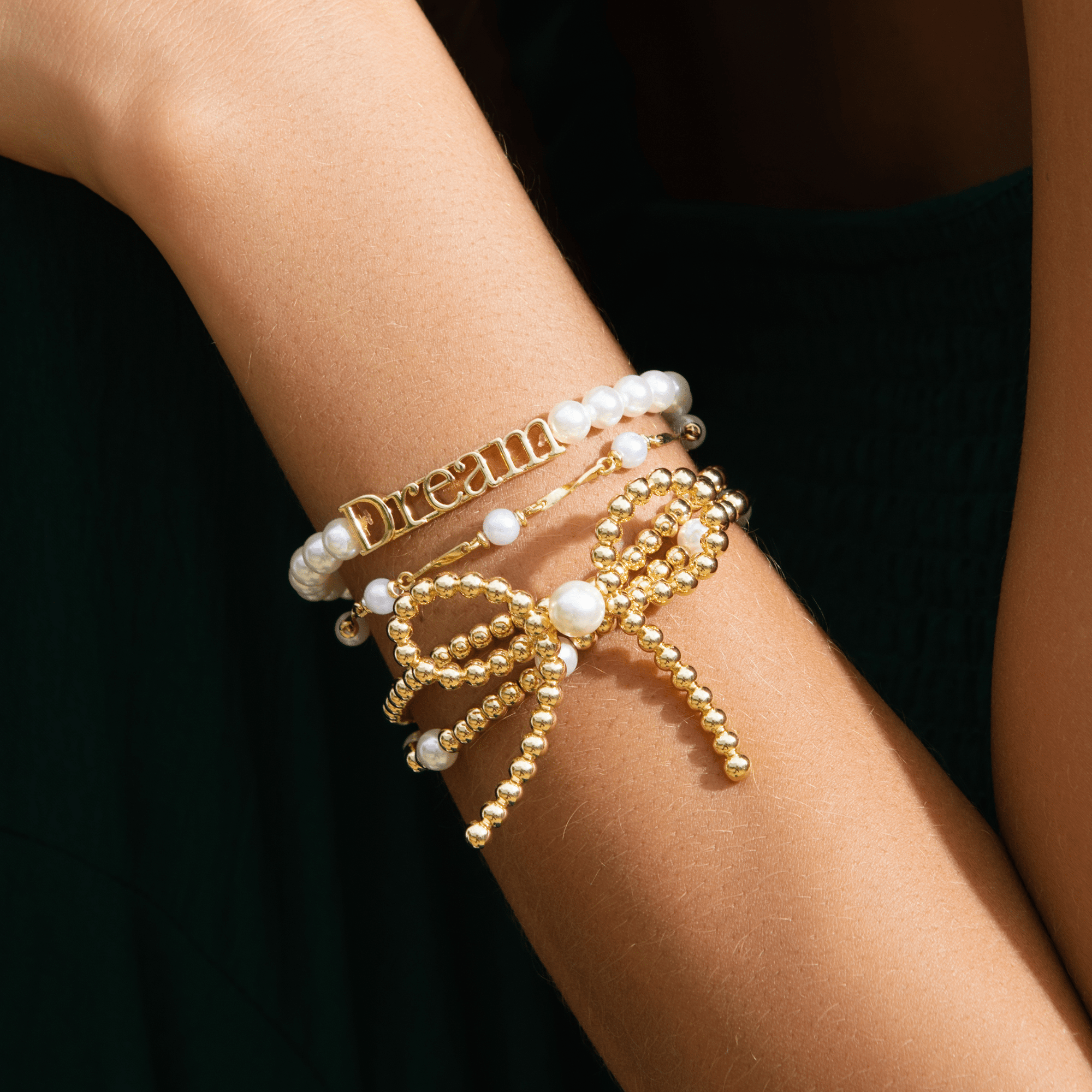 Amora Pearl Heart Stretch Bracelet - Ivory/Gold