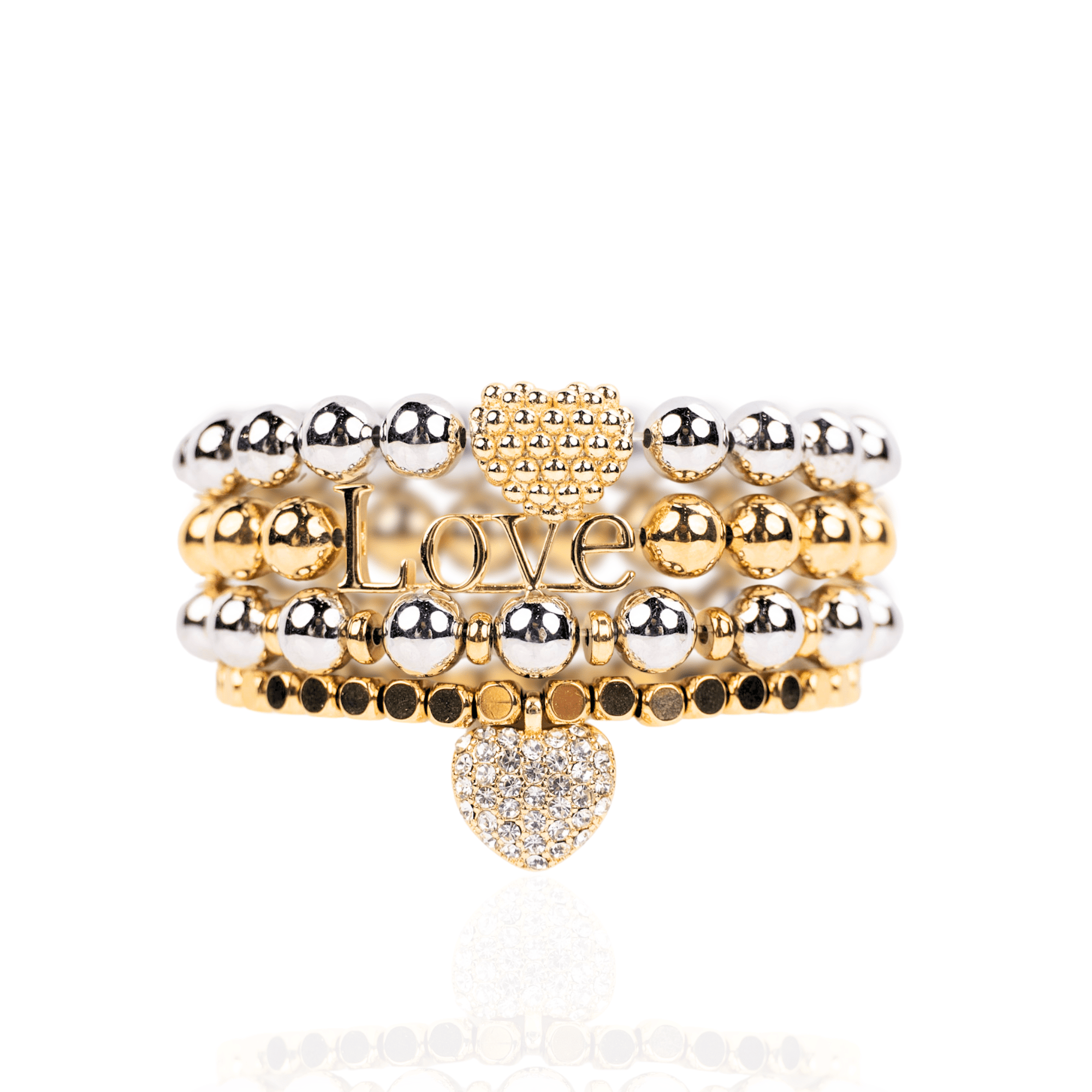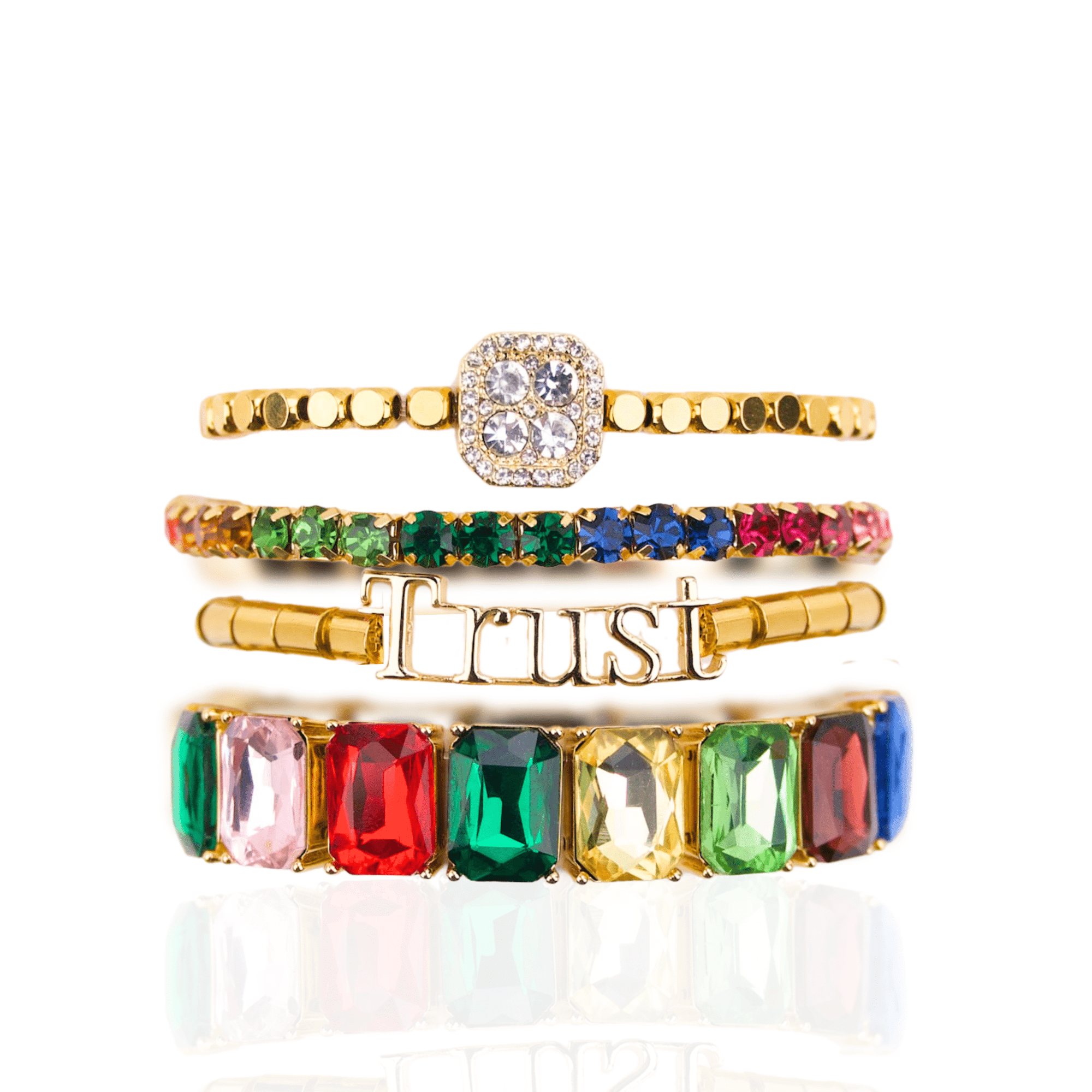 Ibiza 4pc Stretch Bracelet Stack - Crimson/Gold