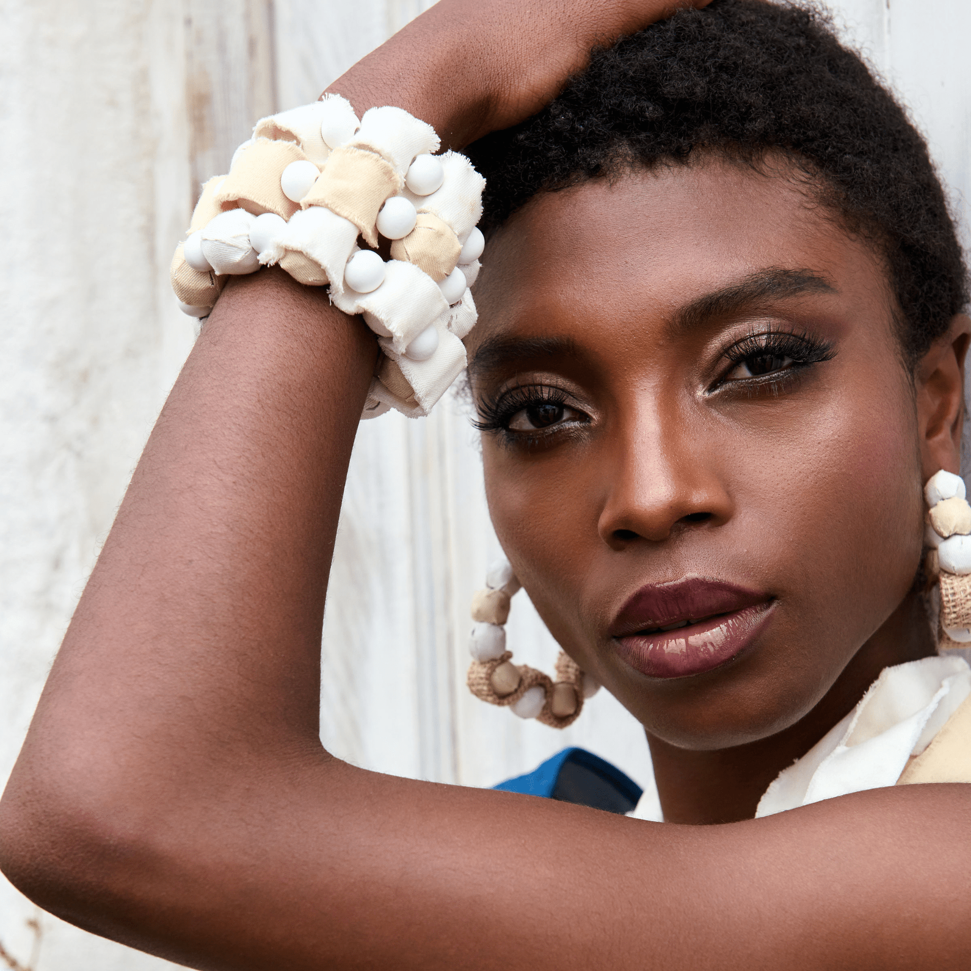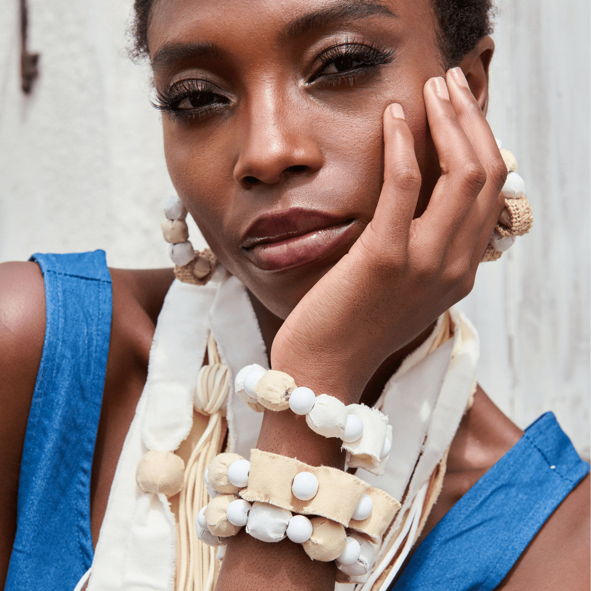 Ayoka Chunky Stretch Geometric Bracelet - Black & White