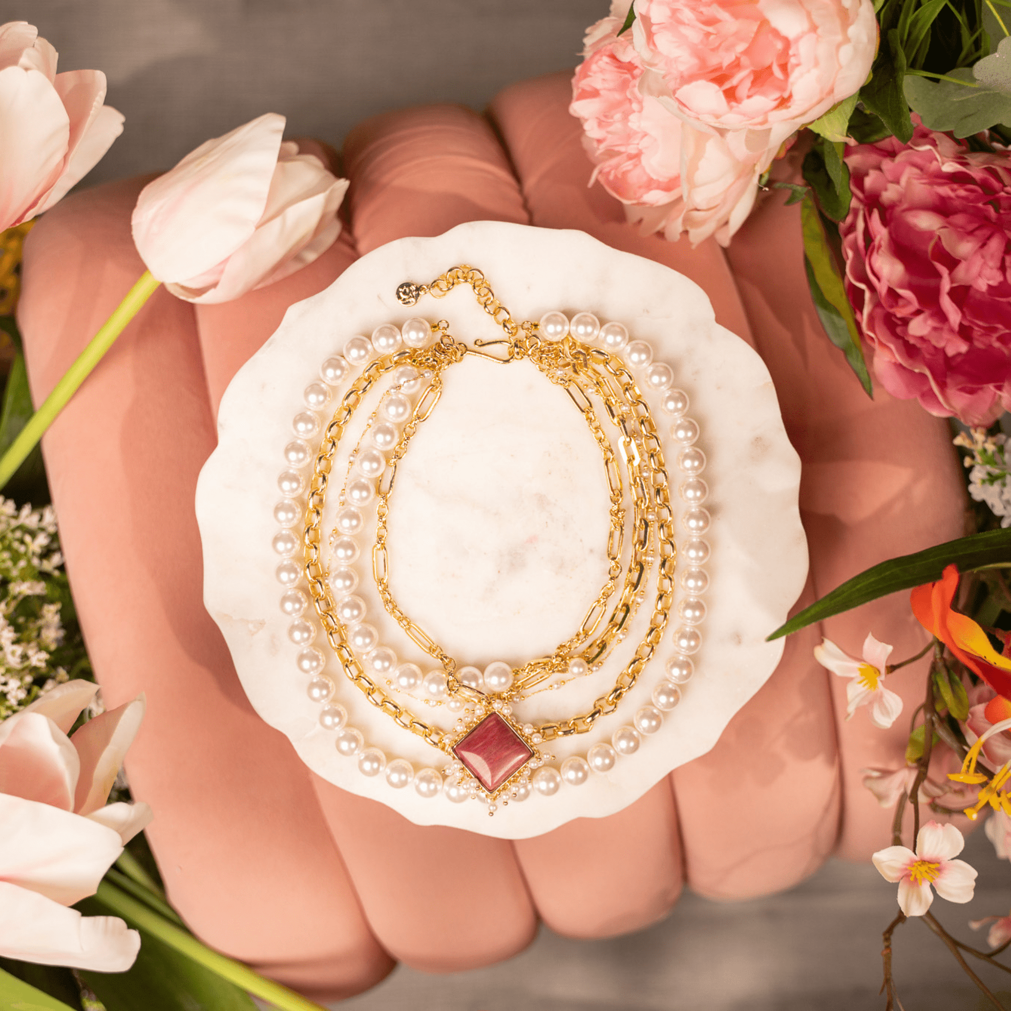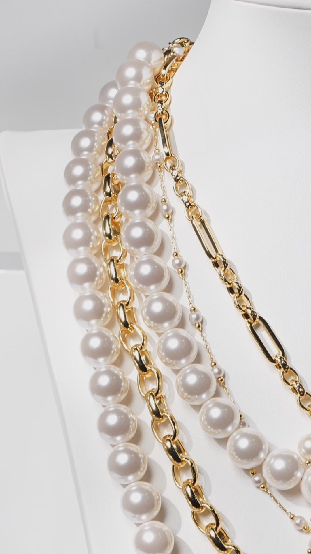 Amora Chunky Pearl Heart Chain - Ivory/Gold