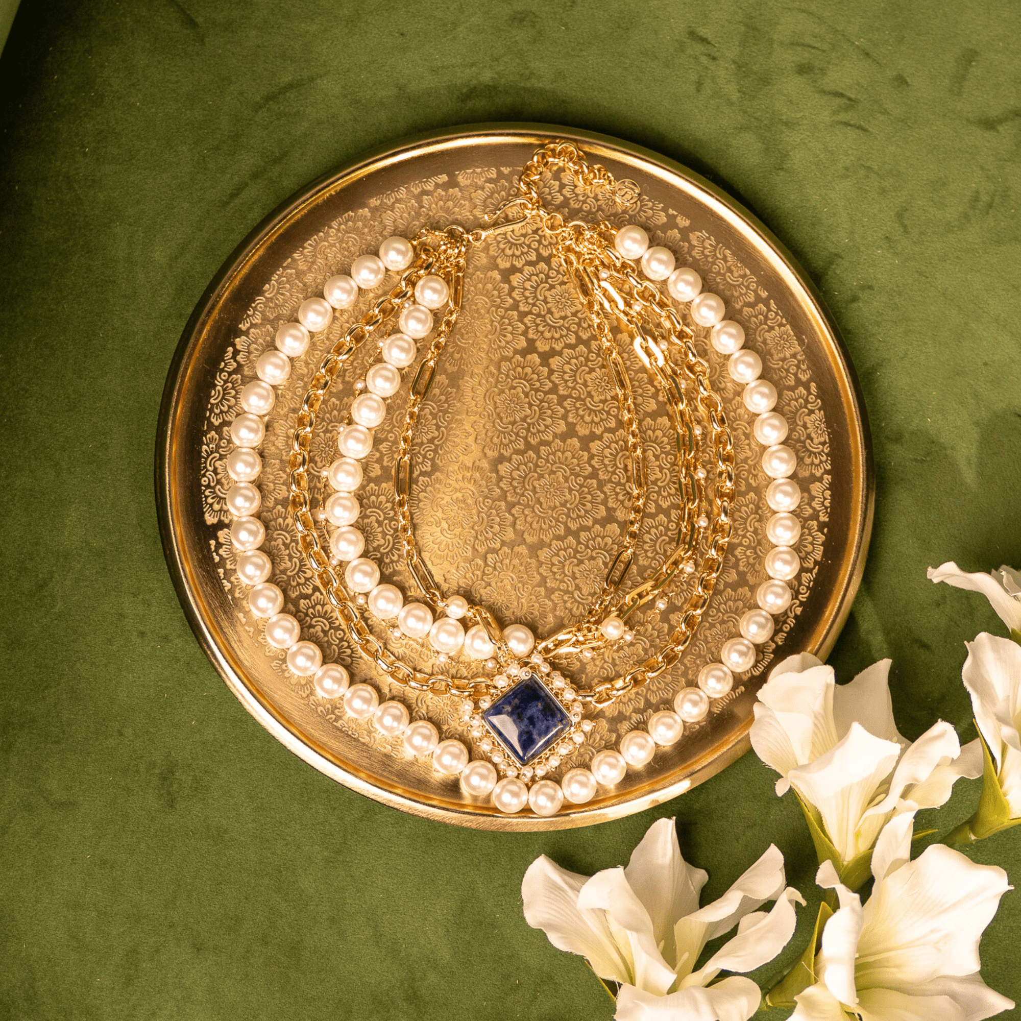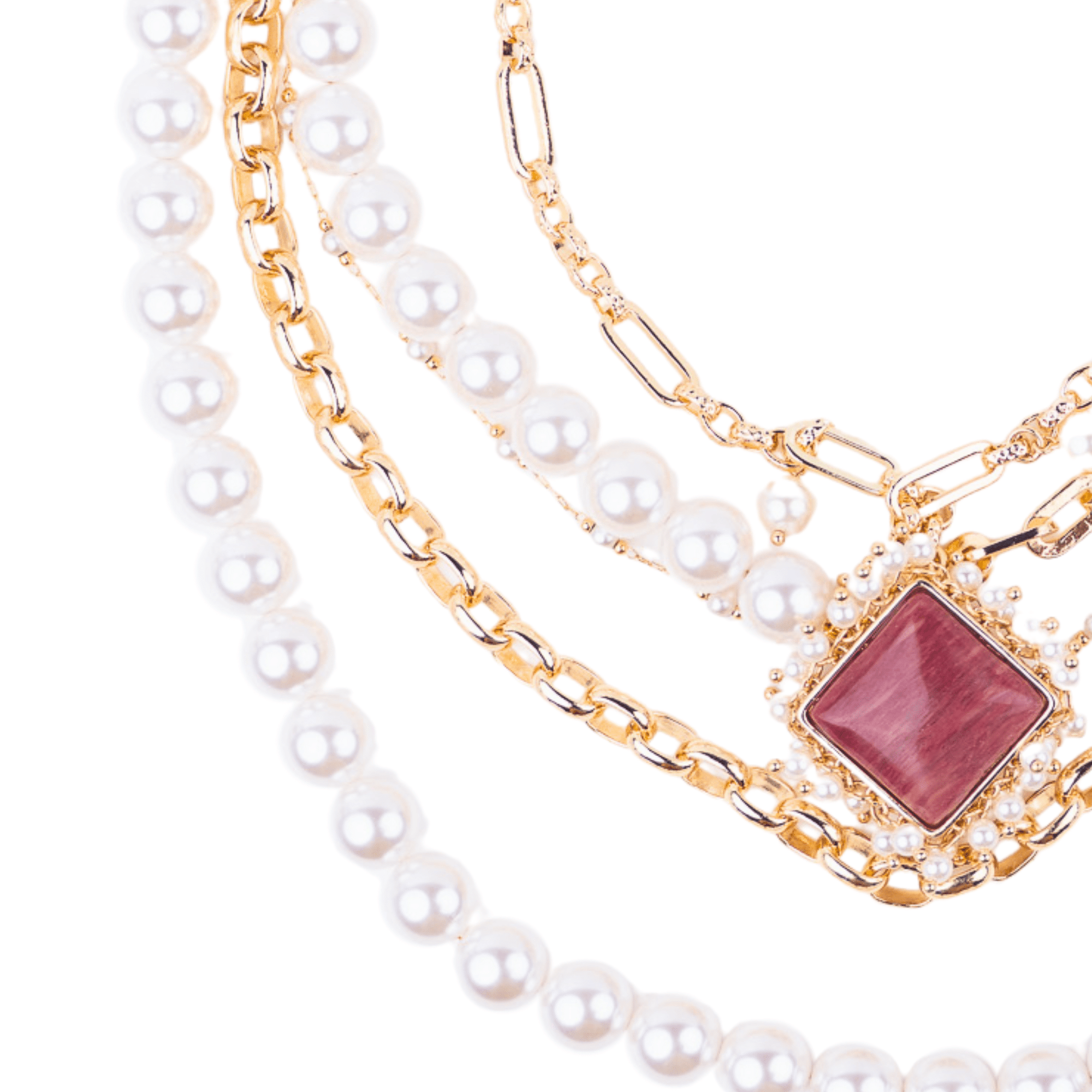 Diamonique Pearl Long Dress Chain - Iridescent/Rose Gold