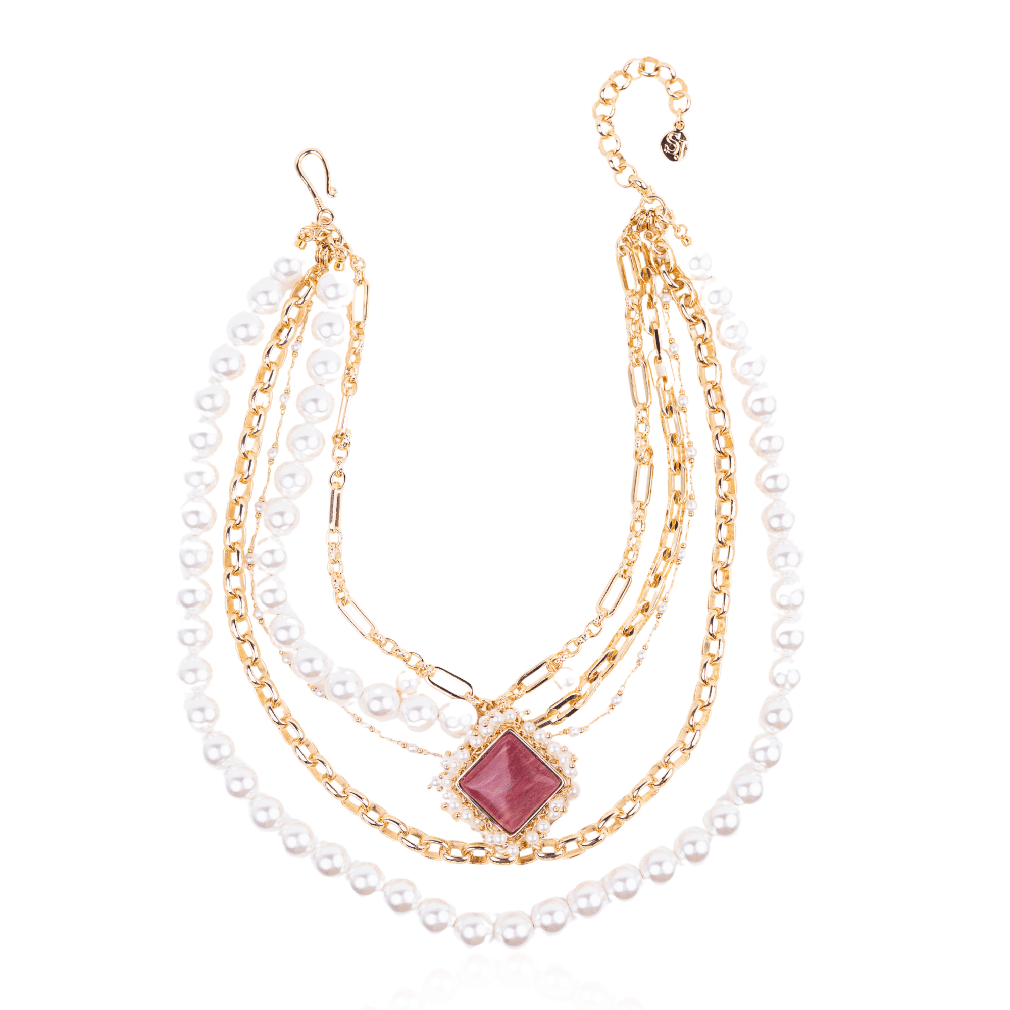 Caliope 2-in-1 Beaded Leather Necklace - Twilight Rose