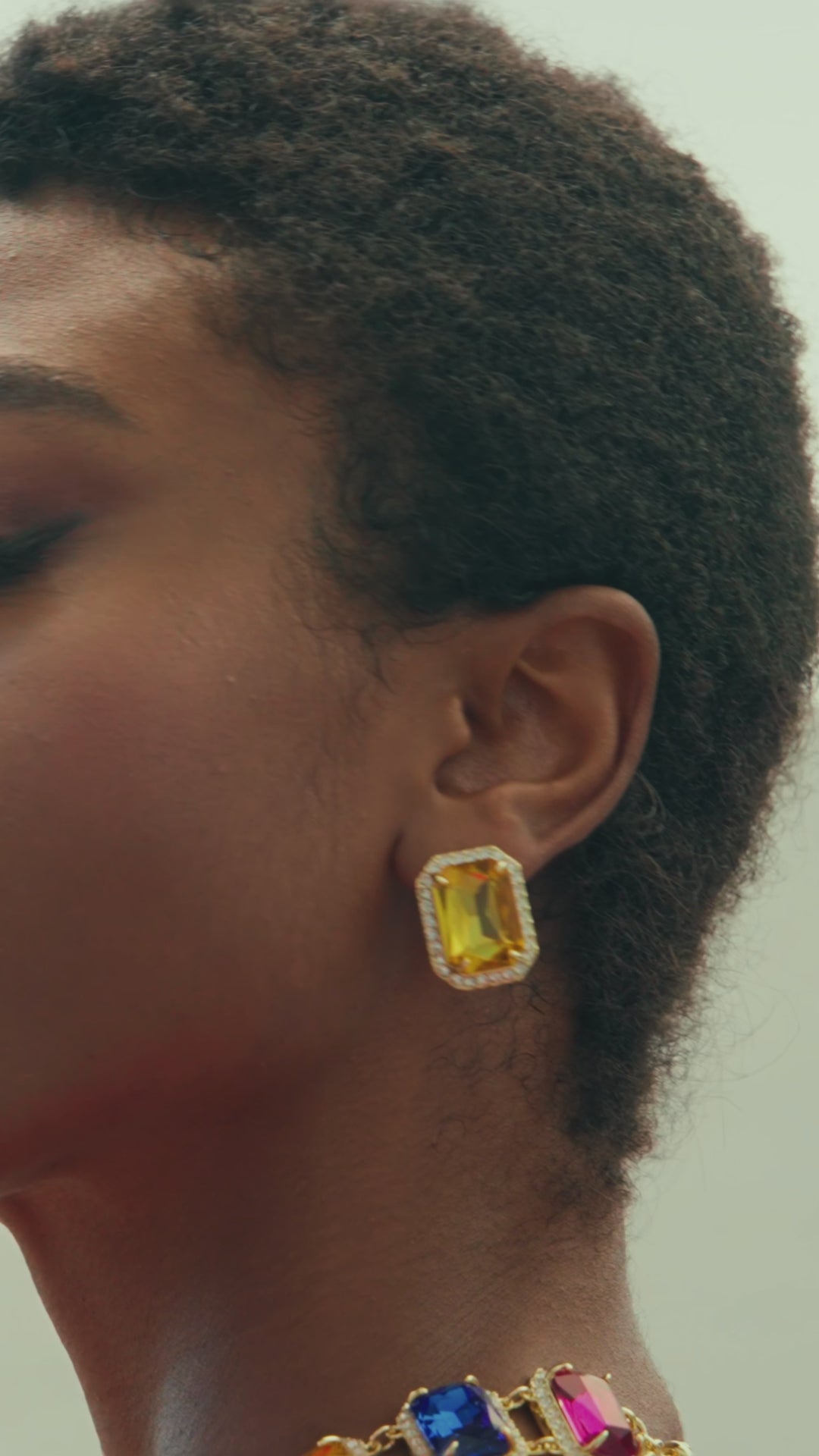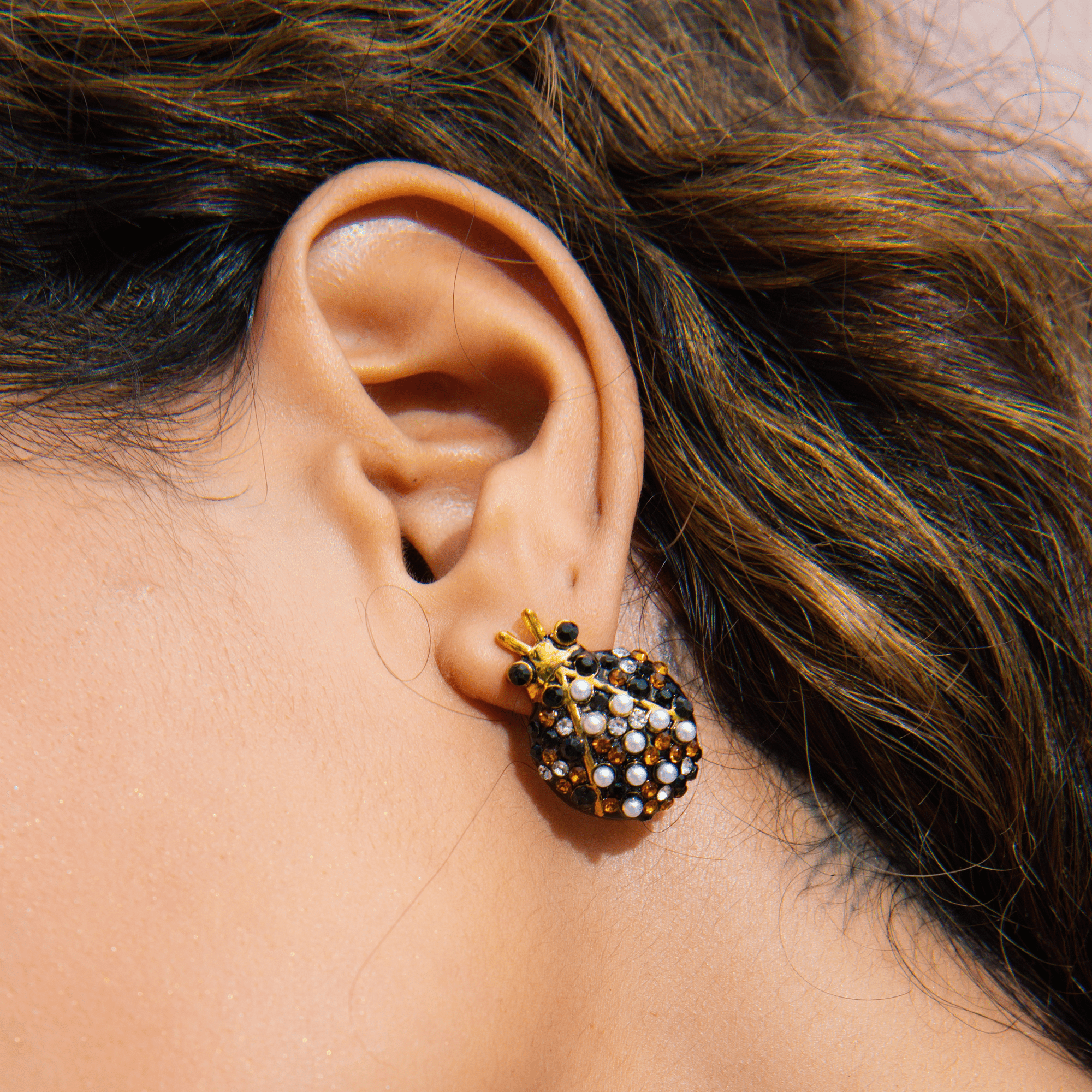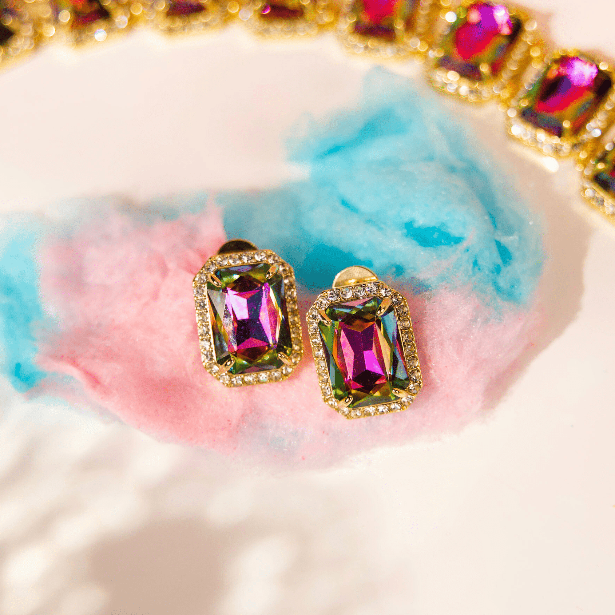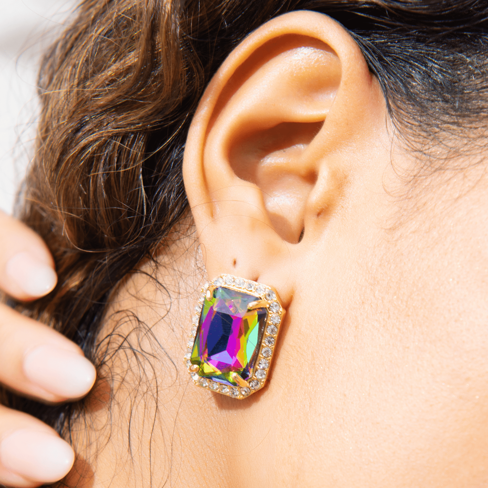 Dina Sculptural Globe Double Studs - Rainbow Rhodium