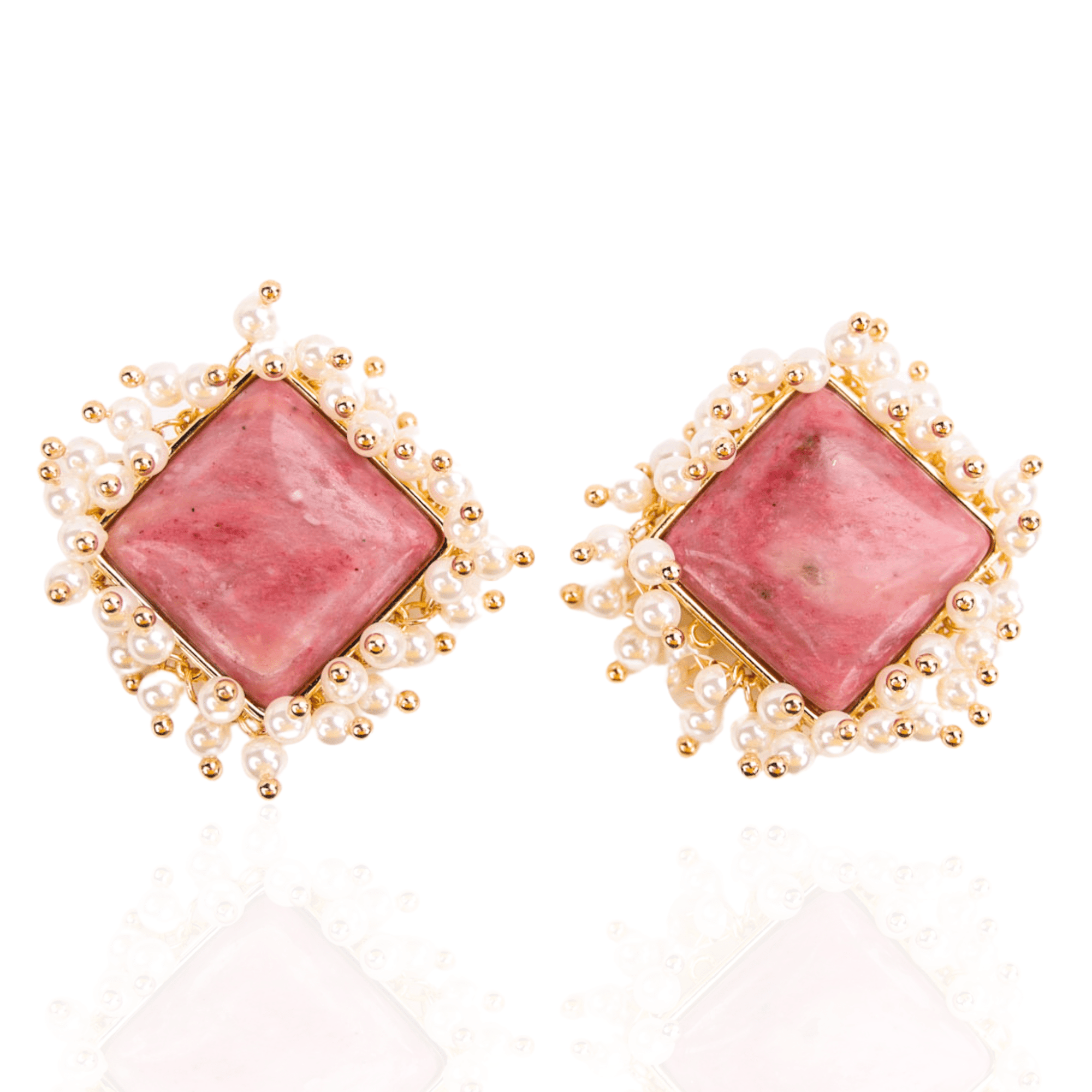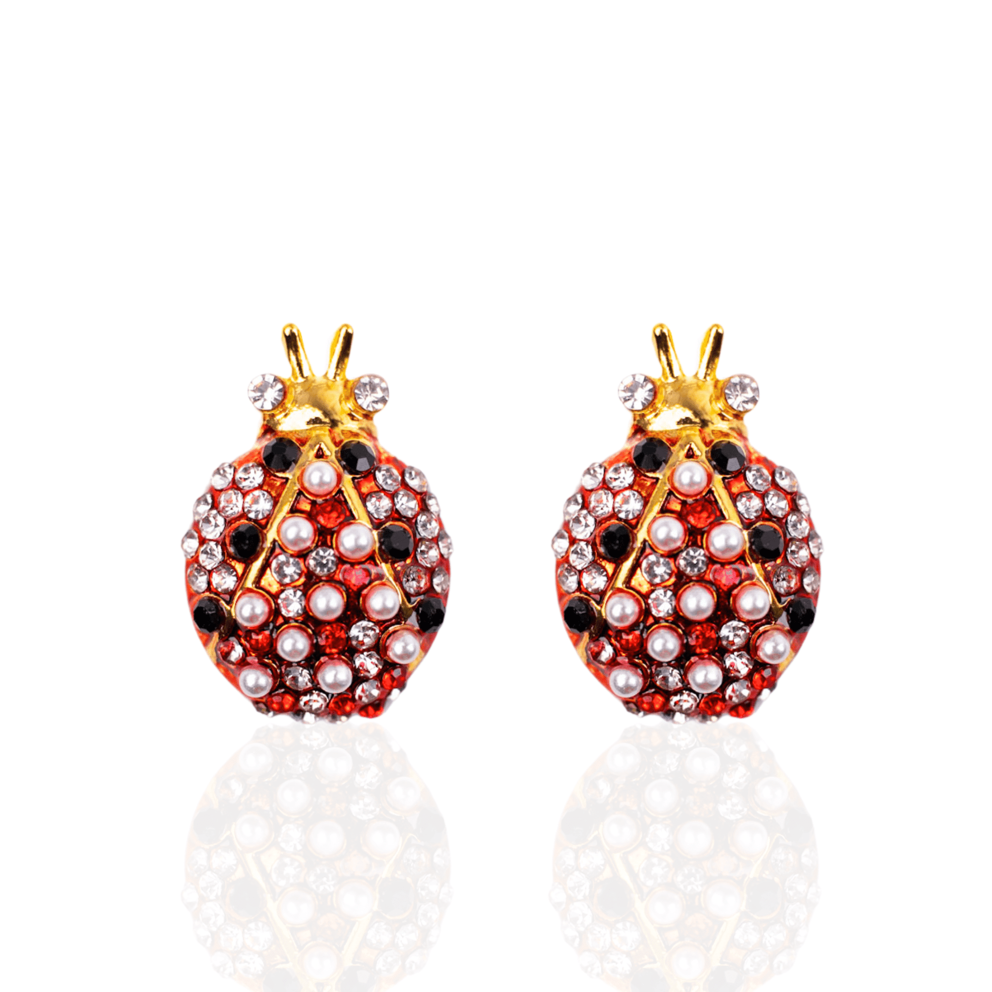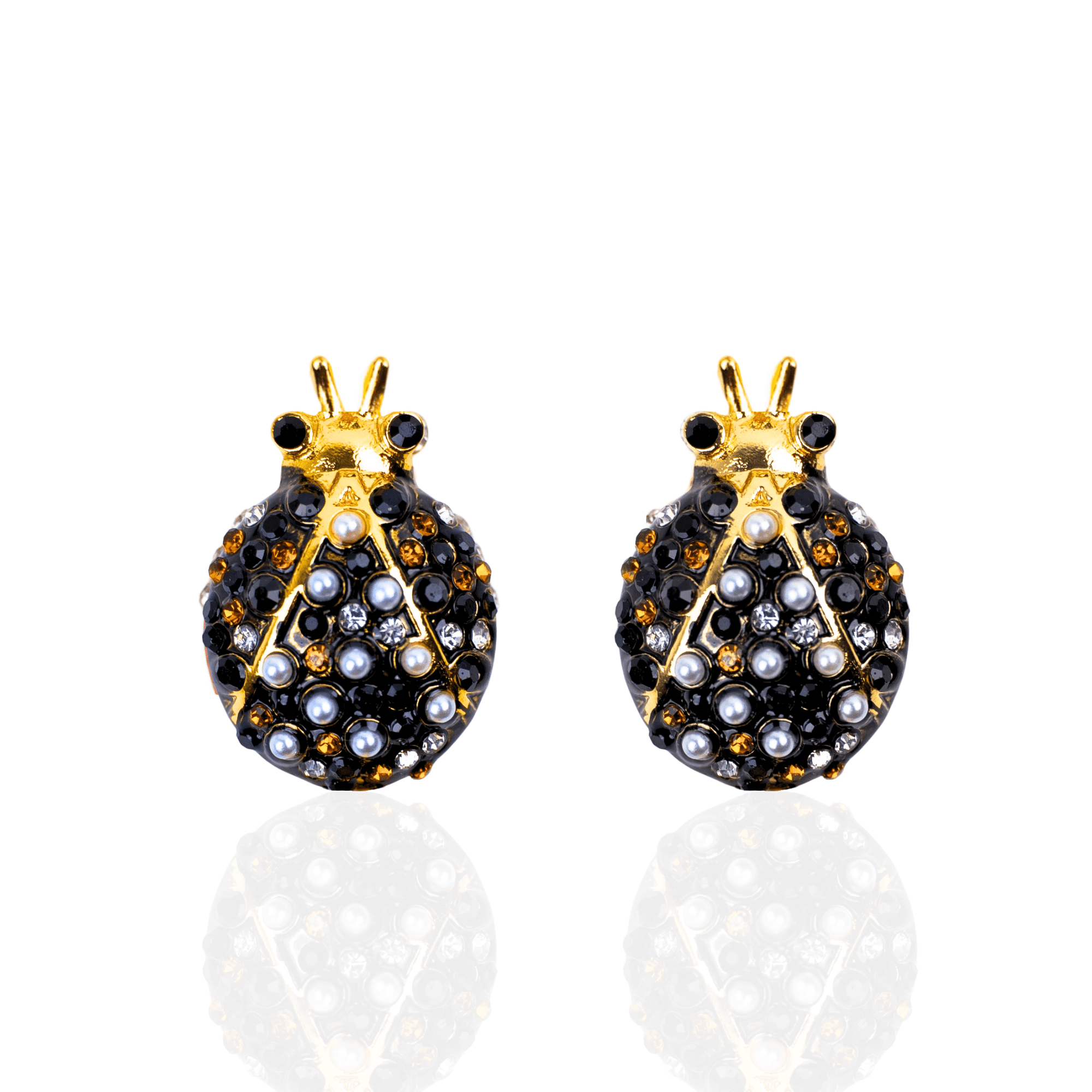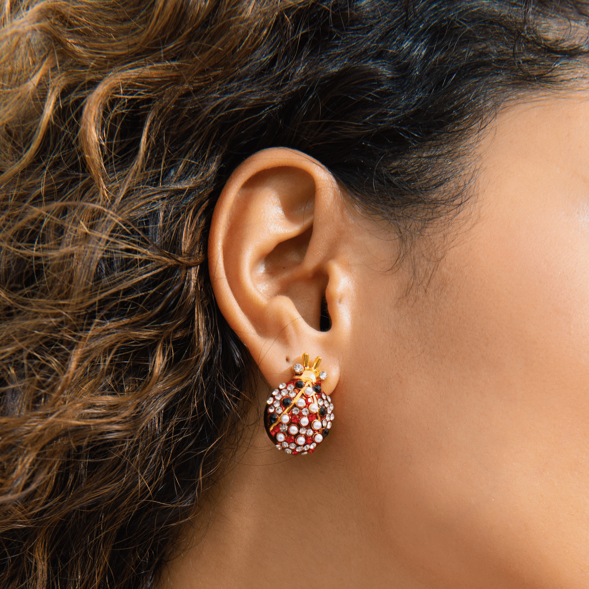 Dina Sculptural Globe Double Studs - Rainbow Rhodium