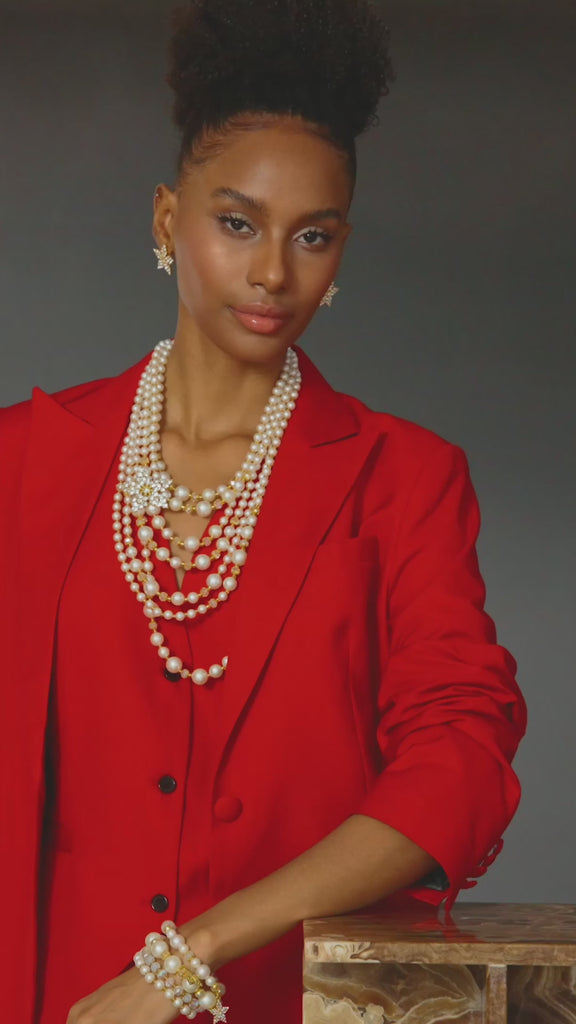 Drape yourself in timeless allure with this opulent 7-strand pearl necklace, where classic beauty meets a touch of stardust. Graduated white pearl beads cascade gracefully in layered harmony, crowned by a delicate star-shaped pearl charm that twinkles off to one side. It’s couture with personality.