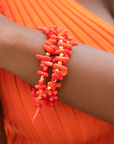 Because your wrists deserve their own vacation. Hand-strung with radiant, sea-harvested coral and accented by glimmers of golden glass beads, Leilani brings bold femininity with a hint of glam. Whether you’re sipping sangria seaside or exuding gorgeous energy at brunch, this adjustable stunner flows with every occasion with grace and glam.