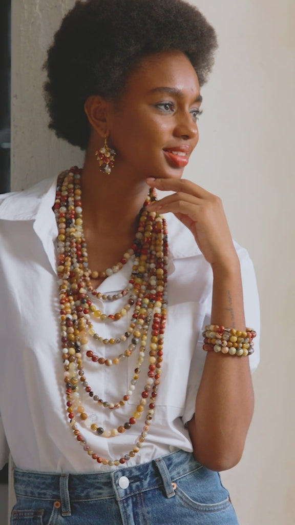 Makemba 2-in-1 Jasper Beaded Statement Chain - Desert Storm