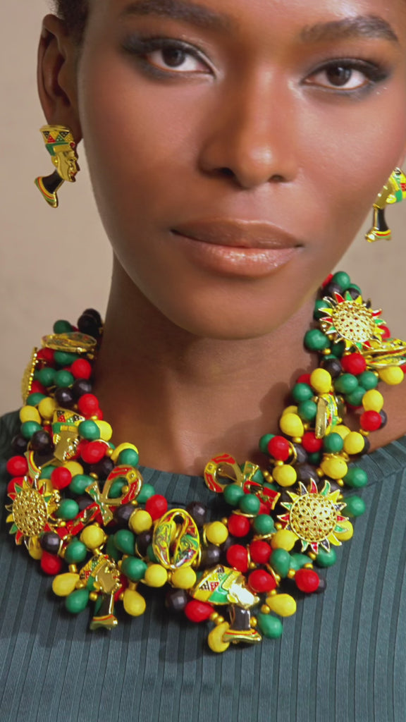 – Style with matching Afrikaan Queen Bib and Afrikaan Queen Stretch Bracelet Stack for a cohesive look