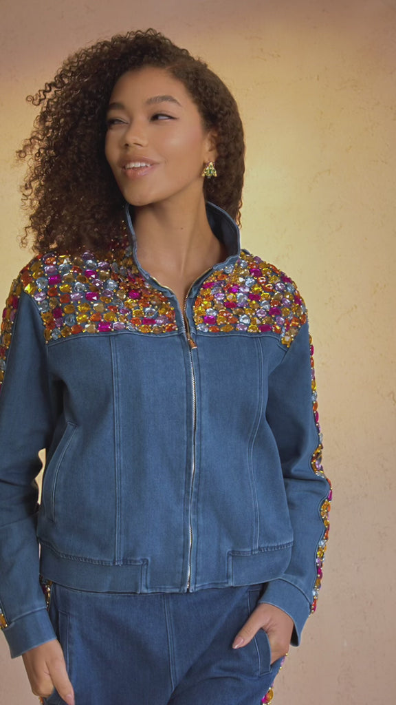 The Gemma Crystal Jogger Jacket - Denim